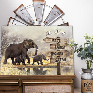 - Elephant Family, Mom, Son, Daughter, Street Sign Canvas, Personalized Canvas