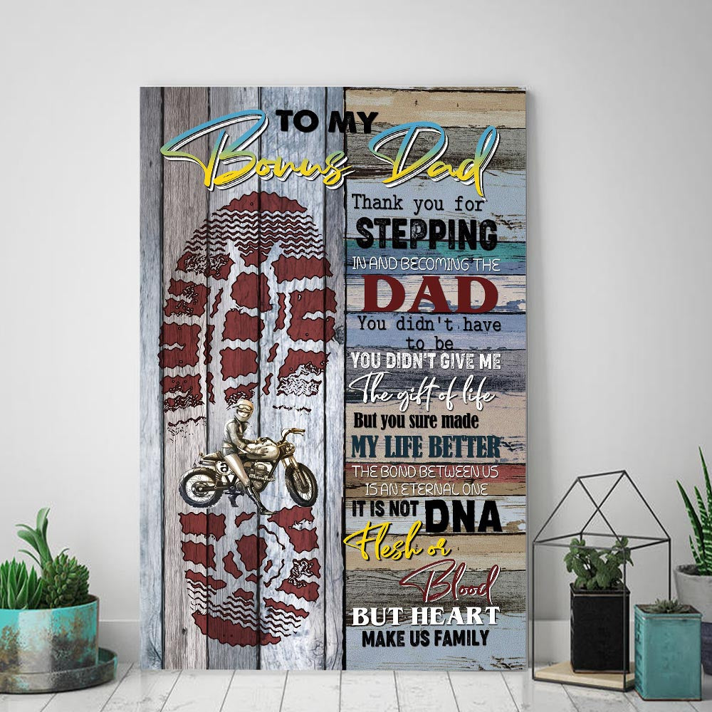 - Motorcycle - To My Bonus Dad, Thanks for stepping in, Gift for bonus Dad Canvas