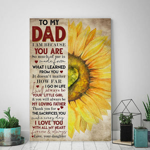 - Sunflower - To my Dad, you will always be my loving father, Gift from Daughter for Dad Canvas